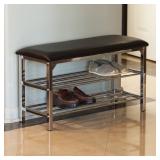 Bathroom Benches Chrome Frame Brown Leather With Cushion Rack Shelf Storage.Brown Leatherette Storage Entryway Bench with Chrome Frame offers superior functionality and beauty with its leather-upholstered top and elegant chrome frame. APPEARS to be new in retail packaging. Please attend the Preview to see the item for yourself. Retail $114.95