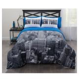 Photoreal New York City Bed in a Bag Comforter Set by CASA, SIZE IS FULL.Start spreading the news - the Photoreal New York City Bed in a Bag Comforter Set by CASA is perfect for college students, budding artists, and Big Apple lovers of all ages. Included in this complete set are a comforter, two shams, a fitted sheet, a flat sheet, and two pillowcases, all crafted with smooth polyester. APPEARS to be new in retail packaging. Please attend the Preview to see the item for yourself. Retail $159.99