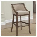 Michelle B2-256-30F 40" Bar Stool with Antique Brass Nail Heads, Fire Retardant Foam Cushion and Comfortable Foot Rail in Warm Brown Distressed Finish with Light Beige Linen Look Seat. Appears to be new in Original Carton. Please attend the Preview to see the item for yourself. Retail $239.00
