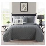 VCNY Home Hayden Two-Tone Geometric Embroidered Reversible 5-Piece Bedding Quilt Set, Decorative Pillows Included.The VCNY Home Hayden Two-Tone Geometric Embroidered Reversible 5-Piece Bedding Quilt Set is subtle, with a pop of color. APPEARS to be new in retail packaging. Please attend the Preview to see the item for yourself. Retail $54.77
