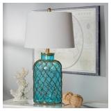 Lennox Nautical Net 30" Table Lamp. Inspired by fishing expeditions and stormy excursions at sea, this charming seeded-glass lamp is wrapped in rustic fishnet and features a crisp linen drum shade evoking a ship’s sail. Appears to be new in Original Carton. Please attend the Preview to see the item for yourself. Retail $91.99