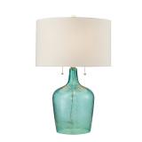 Dimond Lighting D2689 Hatteras Hammered Glass Table Lamp, Seabreeze Blue. A 16" Hardback Shade In White Linen Houses 2 X 60W Bulbs. Double Pull Chains Add A Decorative Element. Appears to be new in Original Carton. Please attend the Preview to see the item for yourself. Retail $153.65