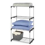Whitmor 4 Tier Closet Shelves Silver / Black. . These extra strong wire shelves are held together with heavy duty resin end connectors. Appears to be new in Original Carton. Please attend the Preview to see the item for yourself. Retail $41.77