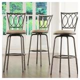 Home Creek Scrolled Detail Adjustable Swivel Barstools - Set of 3. Dark brown metal tube frame creates clean and durable look. Appears to be new in Original Carton. Please attend the Preview to see the item for yourself. Retail $134.99