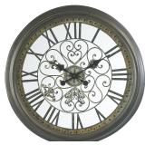 Cooper Classics 4790 Marlow Clock. This lovely wall clock boasts an aged verdigris finish and a decorative face under glass. 24-1/2-inch diameter. Appears to be new in Original Carton. Please attend the Preview to see the item for yourself. Retail $134.99