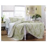 Laura Ashley Rowland Quilt Set, King, Sage. The quilt is 100% cotton with cotton fill. Great for layering for colder nights or to use alone. In Previously Opened Factory Carton Retail $89.99