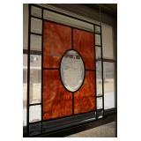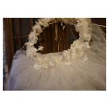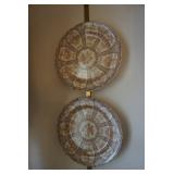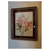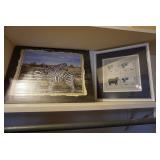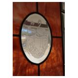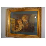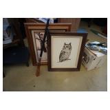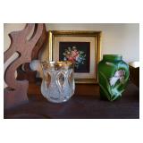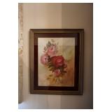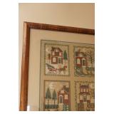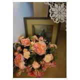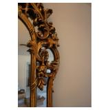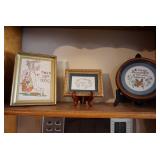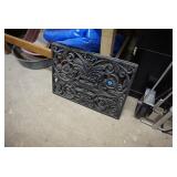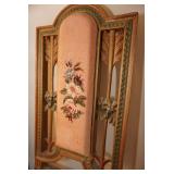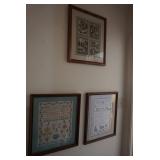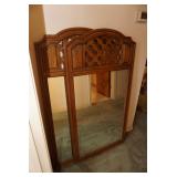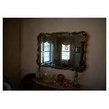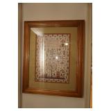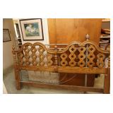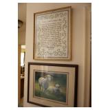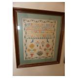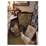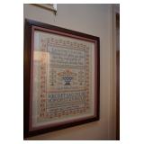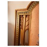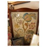 Hallway Vintage King size headboard Full size metal headboard Pair of matching dresser mirrors Art- samplers, cross stitch and needle point