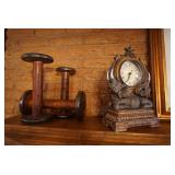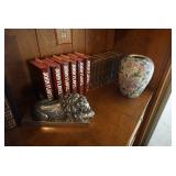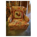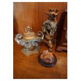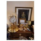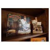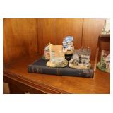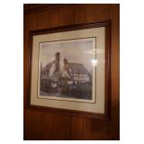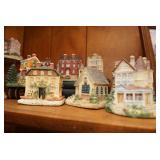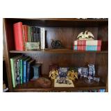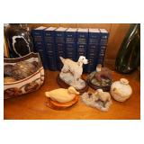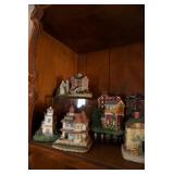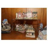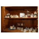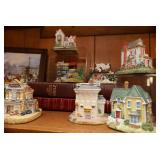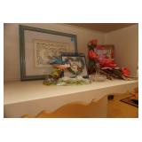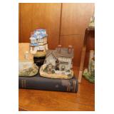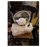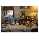 Den Ornate vintage mirrored wall shelf Table top display cabinet Games/puzzles Decorative brass lamps Rug Vintage octagonal side table Floral club chair Ornate French country chair with foot stool Vintage French country 4 drawer dresser Lynn chase china-winter game birds Cd’s/DVD’s/VHS Assorted electronics and speakers-Sony, Emerson and Philips French country coffee table with glass top Decorative plates Art- Thomas Kinkade and Tom Caldwell Fireplace screen Vintage wooden spools Pair of matching club chairs Extensive collection of David Winter Cottages Books Stemware Pottery Stained glass Lion bookends Elephant décor