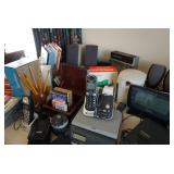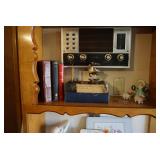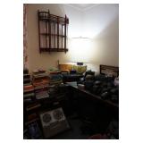 Bedroom 2 Tons of books Huge assortment of cameras- Minolta, Nikon, Cannon Camera bags Tripods Slide carousel Clothing Christmas décor Office supplies Huge MCMC lamp Radios/boomboxes Vintage Sony stereo tape recorder Bookcases Projector screens Art Assorted décor