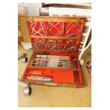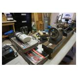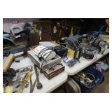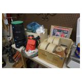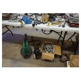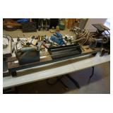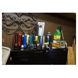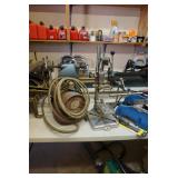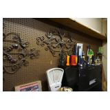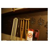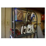 Garage Metal wall art Metal filing cabinet Metal plant rack Walkers BB Guns Craftsman tools Walker Turne Ironing boards Irons Work Bench Aluminum step ladder Flash lights