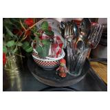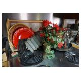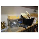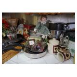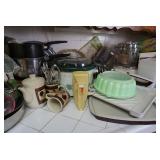 Kitchen Cookware Bakeware Stemware Denby china Vintage West Bend Percolator Flatware Hall teapots Vintage linens Pyrex Corning ware Decorative metal trays Braun coffee grinder Krups tea time Vintage Revere ware Vintage cookie press Cookbooks Vintage Glass bake Utensils Cutlery Cutting boards Royal Doulton- Lambeth Glass candy Silver plate trivets Placemat sets Assorted décor Torquay pottery toby jugs Cuisinart pro food prep center Rival crockpot Revere pressure cooker Homespun china Cast iron cornbread molds Handprinted wooden spoon rack Set of caring American side chairs