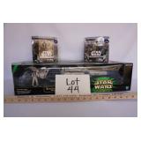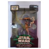 In a galaxy far far away, there was a collector of all things Star Wars. This online auction is a sampling of his extensive collection. Still in the box, mint condition figurines, toys and Legos from the 1990’s. Be sure to check back often for descriptions, pictures and the link to this stellar auction. May the Force be with you! All items start at $1.00 with no reserves! A 15% Buyer’s Premium is added to the winning Bid amount. The auction is open for bidding now, and ends on Friday, January 26th between 7:00 & 8:30 PM EST (bidding ends incrementally). **Auction times are listed in Eastern time. Please subtract 1 hour from ending time for Central time zone** Local pickup in Allen, Texas 75002 on Monday, January 29th between 2:00 PM & 5:00 PM Central. Shipping and Handling nationwide available through USPS at Buyer's expense. PLEASE READ BEFORE PLACING ANY BIDS: A bid is an agreement to purchase. If you are the winning bidder, you are committed to purchasing and picking up your item(s). Please do not bid if you do not plan to purchase. Thank you for your consideration! Questions? Contact us using the "Ask Seller a Question" box above. Responsible Bidding: If you bid, you MUST be available to pick up your purchase on Monday, January 29th between 2:00 PM & 5:00 PM Central in Allen, TX or arrange for shipping or someone else to pick up. If you win an item or items, please process your payment by Monday, 1/29 at 12 PM. If we have not received payment or heard from you by this time, we may sell your item(s) to the next highest bidder and deactivate your account. Bidding closes Friday, January 26 starting at 7:00 pm Central. ENDING TIMES ARE LISTED AS EASTERN TIME ZONE. Please monitor your bidding an hour earlier if you are in Central time zone. 15% buyer's premium will be added to the bid amount. A bid is an agreement to purchase the item(s). You are committed to purchasing and picking up your item(s). Please do not bid if you do not plan to purchase. PLEASE DO NOT BID UNLESS YOU CAN PICK UP DURING STATED PICKUP TIME. Bidding privileges may be suspended if you default on this agreement. We have made every effort to describe this item as accurately as possible with any defects. Expect normal signs of wear associated with antiques, vintage, and used items. We do not list every flaw. All items are sold AS IS WHERE IS. No refunds or returns. Dimensions given may be approximate. Descriptions Princess Leia Chewbacca Clone Commander Jar Jar Binks Queen Amidala Obi-Wan Kenobi Darth Maul Watto Battle Droid Qui-Gon Jinn R2-A6 Pit Droids Zam Wesell Plo Koon Han Solo Boss Nass AT-ST Driver Lando Calrissian Count Dooku Super Battle Droid Flash Speeder Trade Federation Droid Fighters Naboo Fighter Theed Generation Complex Anakin Skywalkers Pod Racer Millennium Falcon Destroyer Droid Sebulba’s Pod Racer Mos ESPA Market Theed Hangar Playset Sebula’s Pod Race Interactive Yoda Luke Skywalker Snow Speeder Sand Crawler Emperor Palpatine, Darth Vadar and Count Dooke Speeder bike with Scout Trooper Electronic Millennium Falcon Star Speeder 3000 Rebel Snow Speeder And SO MUCH MORE!! |