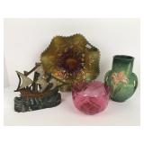 Includes Carnival glass, Wavecrest, Inuit carved stone figures, cast-iron doorstops, Roseville, historical plates, butter molds, slag glass, Waterford, quilts, coverlets, vintage and modern Christmas items, antique typewriter, vintage flute, cookie jar's, lamps, antique oak toolbox, china services include Noritake "Wheatlane" and Rosenthal, Fenton glass, oil lamps, Fiesta dinner plates - serving pieces - bowls, 6 pitcher, cast iron enterprise press, Harp & Carlsberg beer signs, Murray pedal tractor, Plus!