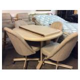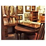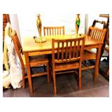DINING ROOM SUITES AND DINETTES…AWESOME MID CENTURY MODERN TABLE, 4 CHAIRS, CHINA CABINET; WOOD & GLASS-TOP 5-PC DINETTES