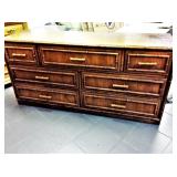 HUGE PECAN FINISH FRENCH PROVINCIAL CHEST