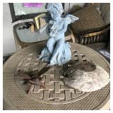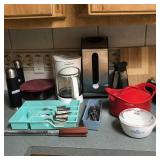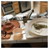 Beautiful Lenox, Gotham, Rogaska crystal, cute chip and dip sets, plasticware, great serving platters and bowls, Revere Ware, Calphalon, countertop kitchen appliances, Corning, Pyrex, small wine rack, glassware, bar stools, Henkels knives, Wolfgang Puck pie and pastry maker, boxes of kitchen utensils, bakeware, cookbooks, Oster buffet server, beautiful wood dining table with stone inlay, matching chairs, solid wood credenza and accent table, with stone inlay, American Whitehall pitcher NIB, new LaZ Boy electric recliner,(NOT a lift chair !), distressed leather sofa and love seat, DVD/CD player, Southwest items, small selection of jewelry, cute shelves, Laurel Burch “Flowering Friends” kitty plate, decorative pillows, Harley-Davidson mirror, wooden shelf w/wicker drawers, nice lamps and mirrors, Lane entry/hall table, Willow Tree “You & Me”, wolf art, NWT Coaster tufted ottoman, JVC stereo system, JVC speakers, Paradigm speaker system and sub-woofer, Onkyo receiver, battery chargers, Time Life books, golf clubs, small shop vac, ice chests, totes, Epson Picture Mate, Harley-Davidson parts/head covers/centennial helmet/caps, fishing items,(no rods or reels), very nice faux wood/wicker patio furniture, tall pub style table w/stone inlay, fans, Xfinity 6 1/2” component system, vintage Mrs. Beasley doll, nice pool cue in case, garden cart, chaise lounges, Honda 5.0hp pressure washer, wall and patio decor, yard decor, yard tools, Weber Genesis gas grill, Weber Kettle grill, baby elephant statue, large bird bath, carved wooden gnome, pet clothing and harness, NIB Red Wing boots, ladders, men’s work clothing, including Nomex items, leather vests, very nice ladies clothing,(small sizes), frilly items, shoes, costumes, purses, belts, men’s ties, frames, sea shells, large decorative wall decor, bed/bath linens, end tables, bedside tables, very large floor vase w/glass top, arrangements, beautiful four poster bed, dressers, queen size bed, tall storage armoire, very nice computer desk, HP inkjet, Everlast boxing gloves, personal care items, pet kennels and carriers,, NIB size 9 rollerblades, luggage and totes, much more.