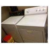 Appliances: Kenmore white washing machine Kenmore white clothes dryer GE stainless steel side-by-side refrigerator