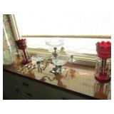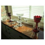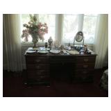 Hekman dining table & 8 chairs with 2 leaves, epergne, pr. of ruby lusters, Cambridge glass, Waterford, stemware, sterling, silver plate, framed Audubon prints, plate racks, 2 room size oriental rugs, pr. of twin beds, 1900 bookcase, wicker rocker, high chair & wheel chair; Davis & Davis dining room rug, sectional sofa, 3’ high Nipper figure, wicker plant stands & étagère, set of “Moonspun” china by Lenox, pair of sofas, good table linens, Librasco balance scale, cookie jars, antique oil lamps, 2 churns, generator, garden cart, 2 nice mahogany & oak computer desks, Hekman mahogany cabinet, demi-lune marble top chest, pair of easy chairs, octagonal walnut table, silk plants, wicker chaise lounge, advertising tin ware, books, standing tube radio, bicycle, CD’s, Lane cedar chest, vintage dolls, walker, model boat, scroll saw, yard tools, lady’s clothes, vintage dressing table, & lots of accessories