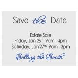 **We do not give prices via Email or over the phone.** **This is a cash & Cards Only Sale. ** We do not have a signup sheet on the day of the sale, first come first served. ** All merchandise must be removed from the property by close of sale day unless other arrangements have been made in writing. **Please bring your own help for moving of large pieces of furniture, we have limited help at all sales. **You are entering property at your own risk. **No large bags or purses are going to be allowed on the property, no exceptions. **We have plenty of bags and paper to wrap your purchases, please bring your own boxes. Courtesy wrapping station provided when space is available. **Children must be accompanied and supervised by an adult at all times. **All items are sold as is with no returns, refunds or exchanges. **Dealers may purchase tax free with sales certificate. ** Selling the South Estate Sales & Services is not responsible for any accidents, liabilities, or claims. ** Selling the South Estate Sales reserves the right to Limit Entry when deemed necessary. ** Photos do not reflect location of items at sale. ** Statements made day of sale take precedence over printed advertisements. Please be kind to neighbors and community by not blocking driveways and following the parking signs. |