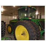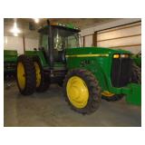 1999 JD 8100 MFWD. DSL. TRACTOR, C.A.H 8870 HRS. P.S TRANS. 4 REMOTES, 3PT, PTO, 6 FRONT WEIGHTS, NEWER FIRESTONE 420/80R46 TIRES W/ AXLE DUALS SN#RW8100P026001