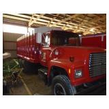 1974 FORD 880 LIVE TANDEM GRAIN TRUCK, 475 GAS ENGINE, 5X3 TRANS. WET BRAKES, 18’ METAL GRAIN BOX, GOOD 9:00-20 TIRES, SHARP UNIT!