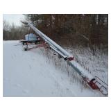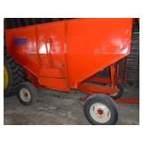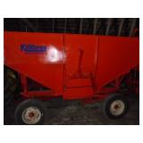 HUTCHINSON CENTURY II SERIES 7”X51’ GALVANIZED PTO TRANSPORT GRAIN AUGERKILBROS 150BU. GRAVITY BOX ON 6 TON GEAR W/ NEW 15” TIRES