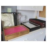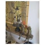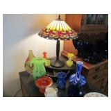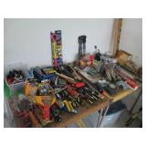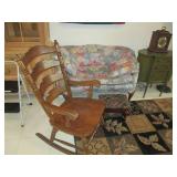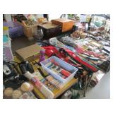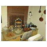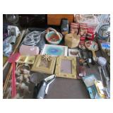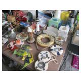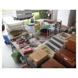 Clock collection (16), 2 La-Z-Boy recliners, love seats, rocker, dining table & chairs, china cabinet, sofa table, 2 queen beds, vintage wash stand, bookcases, desks, end tables, sewing cabinet, tilt top table, trunk, chest, chairs, copper, knife & lighter collection, Tiffany style lamps, glassware, quilt, patio set, leaded stained glass, Noritake "Fairmont" china, full kitchen, refrigerator. fishing poles, folding 3 wheel adult trike, 5 speed bike, Miter saw, Craftsman scroll saw, belt sander, pair West Marine life vests, display cases, hand tools & full garage. |