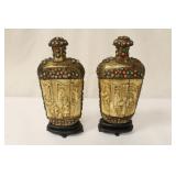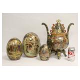 Estate from Huntington Beach and Orange. Victorian furniture, Victorian cast iron bed frame, crystals including Waterford, and fancy large depression glass set, China set by Wedgwood, Syracuse, and others. Military items. Oil painting by Bruce Spicer, Howard Behrens, Victor Matson, Gordon Pond and others. Antique mercury pendulum shelf clock. Life size gilt wood carved Quanyin, pair vintage large Chinese stone carved Fu-Lions. Large collection of Chinese water color paintings, total over 25 paintings, including scrolls, framed panels, several fan paintings, with few important examples. Also several unusual vintage Vietnamese/Burmese oil paintings. Vintage Chinese chloisonne pieces, including a rare vintage Chinese chloisonne jar with the handles in bat motif, and a rare massive bronze based cloisonné seated Buddha. Collection of Chinese yixing teapots, including several fine and unusual examples. Chinese antique and 20th century porcelain collection, including fine collection of early 20th century painted porcelain plaques, fine blue and white porcelain examples, selection of famille rose porcelain pieces. Chinese bronze sculptures, including 10+ archaic style bronze vessels, 19th century and 20th century bronze Buddha and deities, cast iron items. Large collection of Chinese jade and jadeite carvings, including 20+ pieces fine white and light celadon jade carved ornaments, a rare celadon jade carved bitter melon, fine apple green and lavender jadeite carvings, including large examples, also a rare sutra book with white jade plaque pages engraved with sutra. Chinese framed embroidery panels, including a large example depicting god of longevity. Stone, jade and jadeite snuff bottles. Antique Chinese melon shape silver box. Several fine Chinese coromendel room dividers. Fine jewelry, including diamond rings, rings with precious stones, fine jadeite jewelry including jadeite ring, earring, fine jadeite bangle bracelet, a fine translucent jadeite bead necklace, and more. |