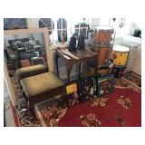 Music store owners offers lots of instruments including, 1992 Heritage Sweet 16 Archtop, 1972 Gibson ES-175 Vintage Archtop, guitars, violins, 1920's King Saxello Curved Soprano sax and more saxophones, drums, and amps, Yamaha keyboard, guitar cases, vintage electronics & radios, tons of CD's, collectibles, art, posters, masks, console piano, spray floor lamp, book shelves, Asian cabinet, dining room table and chairs, secretary, rugs, bikes & lot's more!! |