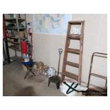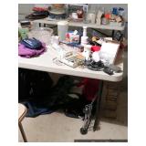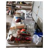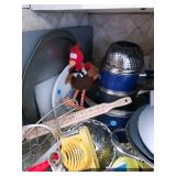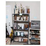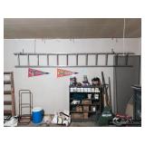Garage Vintage industrial shelving unit with sliding glass doors Assorted golf clubs – Calloway, Hogan, Titleist, Wilson Assorted golf bags Golf bag cart Huge lot of golf balls – new and used Huge lot of golf tees Golf shag bags Golfing trophies Golf cart cover Golf bag travel cover Vintage bowling ball and bag Baseball pennants Absocold mini refrigerator Showtime rotisserie and BBQ oven Black & Decker toaster oven Assorted kitchen items Cast iron skillet and frying pans Hand tools Craftsman tool box Hardware Extension cords, surge protectors, and outlet timers Black & Decker 7” circular saw Pole saw Ladders – wooden and aluminum Yard tools Hand cart Chemicals, paint, caulk, stain, insect killer Tackle boxes Large fishing nets Card table with four matching chairs Luggage and duffle bags Mounted horns |