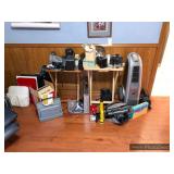 Bedroom 4 Leather recliner with nail head trim Beautiful hand painted rocking chair Small coffee table Assorted cameras and camera equipment – Polaroid, Sony, Minolta, vintage Albums Flashlights Lasko electric space heater Men’s Wilda leather USA jacket Assorted coats/jackets Assorted baseball caps Wooden hangers Photo albums Frames Board games and puzzles Holiday décor DVD’s/VHS Decorative pillows Assorted décor Books Art