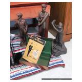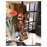 Back Porch Iron patio set – bench, chair, and planter Huntington Cast propane grill with cover Yard art and statuary Crock pitcher Metal bucket Wind chimes Pots/planters