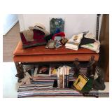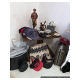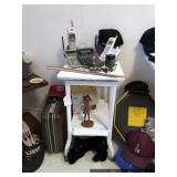 Bedroom #1 Vintage secretary desk Wooden storage cabinet Mid-Century Modern wooden bench with upholstered seat Side table TV tray set on rack Assorted men’s neckties Men’s jewelry boxes Vintage wooden cart on wheels Vintage typewriter cart Vintage Coronamatic 7000 typewriter Vintage Western Electric sewing machine Golf towels Golf hats – straw and caps Golfer statuary Golf themed decor Vintage Life magazines Vintage hat boxes – Cavanagh, Dobbs Stetson felt western hats Western belt buckles Large seashells and coral Brass duck head bookends Office supplies Calculators Telephones Weslo Pursuit 680s exercise bike Art Books