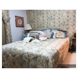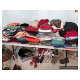 Bedroom #2 Queen mattress and box spring set Bedding Women’s clothing Scarves and purses Hats and belts Shoes Jewelry boxes Brass mirrored dresser trays Vintage folding luggage rack Vintage afghans Sewing notions Craft supplies Stationery Hat boxes Brass lamp Vintage rotary telephone Gift wrap Bedding and linens Art