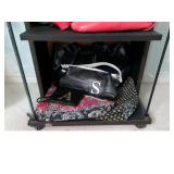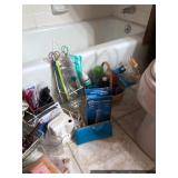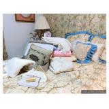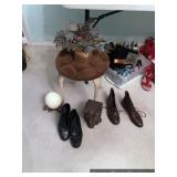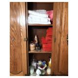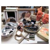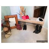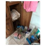 Bathroom Vintage Sunbeam massager Assorted toiletries Hotel mini soaps Brass bathroom accessories Vintage brush, comb and mirror set Nail polishes Lighted makeup mirror Sunglasses Makeup bags Candles Towels Apothecary jars Waterpik Water Flosser Haircare products Assorted decorative items Art Master Bedroom Beautiful corner chair with mother of pearl inlay Brass bench with upholstered seat French Provincial stool with upholstered seat Stereo cabinet Tons of women’s clothing Shoes and boots Scarves and purses Vintage linens