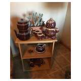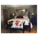 Carved 4-poster California King Size Bed Cherry Virginia House High Boy Cherry Virginia House Dresser Glass Top Table with 4 Chairs Cherry China Cabinet Leather Reclining Love Seat Leather Recliner Ridgeway Grandfather Clock Sleigh Day Bed Marble Top End & Coffee Tables Spiral Metal Shelf Cherry Virginia House King Size Rice Bed Lingerie Chest Flat-wall Cabinet Curio Cabinet Sofa Table Kimball Victorian Style Chairs Kenmore Washer & Dryer Small Kenmore Upright Freezer 55” Samsung Flatscreen TV Cut Crystal Lamp Pioneer Woman “Bloom” Dishes Mirrors Pictures Lamps Rugs Linens Hull Brown Dripware Gingerbread Man Cookie Jar Authentic Native American Jewelry High end Ladies Clothing & Accessories Porch Rockers Christmas & Holiday Decor Bird Bath Yard Art Treadmill Longaberger Baskets Household Misc Kitchen Misc