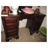 Important & signed vintage set of heavily carved Japanese double sided desk and 2 chairs. Made by Tomekechi Suzuki in Shikoku, Japan (25% OFF)