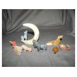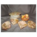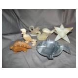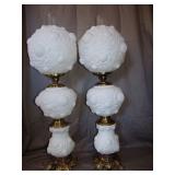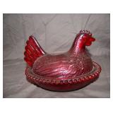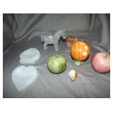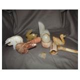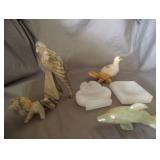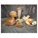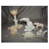 GLASS & POTTERY: FENTON: Hard to find Pair 3-Section Satin White Puffy Rose Gone with the Wind Table Lamps, (2) Satin White Poppy GWTW Table Lamps, Satin Burmese Rose Garden GWTW Table Lamp, Plum Ribbed Table Lamp, Aqua Hobnail GWTW Table Lamp, Cranberry Daisy & Fern Ruffled Edge Vase, Plum Carnival Rose Vase, Plum Carnival Swan Vase, Nice selection of Artist Signed Fenton Decorated Glass including a QVC Sample Vase in Amethyst, Emerald Candy, Plum Overlay Ewer, etc: Heisey, Fire King, Anchor Hocking Ruby, Pyrex, Pink Depression, Indian Ruby Hen on Nest & MORE GLASS: POTTERY: Shawnee Puss-N-Boots Cookie Jar, Shawnee Smiley Pig Cookie Jar, Shawnee Cornware, McCoy "Cookie Jug", McCoy Coffee Grinder Cookie Jar, Marcrest Divided Bowl, Marcrest Covered Bowl, Marcrest Milk Pitcher, Hull Mirror Brown Ware, Hall Water Jug & More! 40+ pcs ALABASTER & ONYX COLLECTION: Bear, Donkey, Elephant, Goat, Dolphin, Turtle, Kangaroo, Fish, Swan, Hog, Duck, Rabbit, Seal, Bull, Moon, Owl, Pipe, Fruit, Ashtrays & More!