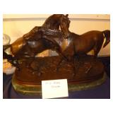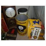 A very interesting collection of items: Remington Bronzes (Bronco buster and Stampede, Isadore Bonheur Bull, P J Mene Horses,) Capidimonte Figurines, Tiziano Galli ( Winemaker, Woodworker, Tailor, Dentist etc), Cortese, Armani figures, Boehm Animal figures, Capidimonte and Boehm flowers, Beautiful etched glass tray, Murano glass tea set and set of 3 vases. beautiful Ribbon Mahogany Highboy, Green painted chest of drawers and blanket box with Eagle décor, a wide variety of Vintage floor and table lamps, Many vintage student metal lamps Mid Century Modern sofa, bucket chairs, 4 kitchen chairs, coffee tables, 4 Hitchcock & Co chairs, University of Pittsburgh chair, Entire room of vintage bar mirrors (He worked for Stroh’s and Budweiser), some light up signs, Bar glasses, Steins sports items From University of Pittsburgh and Various NFL teams, vintage sports games, Antique and vintage baby dolls, Ideal Shirley Temple, Snow White doll, Madame Alexander, Madame Alexander 21” coco 1966 dolls, Lots of Misc Vintage items, Childs record players. Lots of every color depression glass, complete set of Johnson Brothers, coach Scene China, Many additional China sets, Lenox, Few Hummel, Hand painted dishes, vintage Lazy Susan, 2 silver plate flatware sets. collection of Old Urns and pots, Nice brass towel bar, antique French hand painted tole flower arrangements, Old bronze arrowheads, small Peruvian metal figures. Old silk fabrics Small owl collection, vintage Oil Paintings and Prints, Lincoln Bust, LOTS MORE….TOO MUCH TO MENTION