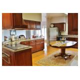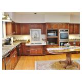 Kitchen - 16' x 21'8" - Remodeled 5 years ago with quartz counter-tops, wood flooring, skylight, dishwasher & ice maker (5 years old), Jenn-Air stove & double ovens, Whirlpool ice maker & refrigerator, GE induction top stove with warming oven, custom cherry cabinets, custom hand painted tile back-splash from Portugal