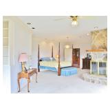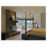 Master Suite - 30'8" x 24' with wood burning stone fireplace with outside pass through, (2) master bathrooms with shared shower, (2) whirlpool tubs, (2) walk-in closets, (2) linen closets, dentil molding