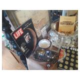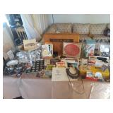 This house is crowded with 60's and 70's furniture. The garage is packed full of all kinds of woodworking equipment and tools. Some of the tools are new in the box. There is also a large amount of wood, both firewood and lumber. Wagon wheel bench - The wagon wheels went from Missouri to Kansas behind horses in the mid 1880's where they stayed till the mid 50's when one of my brothers made them into a bench. The next 50 years they were in my mothers front yard in northwestern Kansas till my brother took them to California in the back of his F150. Sheets and Linens Fire Fyler Safe New HP Printer Mid Century Lamps Vintage Gun Cabinet Lawyers Book Case (2) China Hutch Secretary Desk New Kitchen Small Appliances Fine Porcelain China Diane Japan Imperial Rose Panasonic 50" flat screen TV Mid Century Furniture Dressers Desk Kitchen Buffet Silver and Black 36" Kenmore Side by Side Refridgerator Barware Vintage radio, stereo and record player. Yard Art Rusty Gold Craftsman tools (some new in box) Band saw Compound Miter Chop Saw Air Compressor Grinder Sander Hand drills Wood And a lot more.
