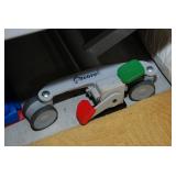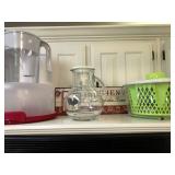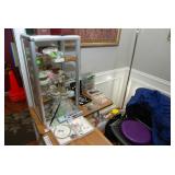 Kitchen – features some nice items for the stove top including iron skillets and some great oven-safe dishes. We have bowls, chicken items and some large Pyrex casserole dishes. We have some canning jars and interesting smaller bottles and bowls. There is a nice lettuce spinner, and filtered water pitchers. If you like shabby chic, you will love the small “what-not” shelf and its collection of chickens. We have some vintage pitchers, bowls, glasses and plates. If you are into collecting one of a kind glasses and plates, we have and area in the kitchen reserved for you. There is an abundance of small appliances such as: Cuisinart oval slow cooker, a Cuisinart coffee maker, a Hamilton Beach food processor, an Aroma stainless coffee maker, a Hamilton Beach Serve ‘N Set (electric knife and serving fork) in original storage container, Cuisinart Toaster Oven, Dash Hot – Steam, Small Chopper, Small Hot Plate, Hamilton Beach Round Slow Cooker, Slicer Ribbon Cut, Power Cooker; Cook Slow, Steam, Pressure, etc., Sunbeam Water Purifier, Osterizer 10 Speed Blender, Rival Hand Mixer, West Bend Can Opener, a VitaMix 3600 in great condition, and a Bella Kitchen Rocket Blender – Personal Size. There are measuring cups, and lots of different size pourers, juicers, butter dishes, lots of interesting utensils and gadgets (some like new). We also have a Presto Power Pop which you fill and use in the Microwave. There is a stainless canister set, lots of bowls, assorted cups, Flatware sets and three different containers that hold spatulas, mixers, servers, fry spatulas, and much more. Come early for the best selection.