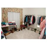 Front Bedroom / Boutique – features assorted clothing, shoes, and bathroom items. We have three racks of clothes and lots of shoes. The sizes of clothing are: M, L, XL, XXL, 1X, 2X 3X & 4X. Here is a list of then more popular Clothing labels: Adonna, Apt9, Barbizon, Crots & Barrow, Dress Barn, Vanity Fair, Alfred Dunner, Jennifer Lopez, Ruby Road, Epilogue, Van Heusen, Verve, Cathy Daniels, Chaps, Cato, Suzie in the City, Worthington, Ana, GAP, Liz Claiborne, GAP, St. John’s Bay, Lane Bryant, Essentials, Coldwater Creek, Jones of New York, Old Navy, Reba, Daisy Fuentes, Investments, White, Stag and Liz Lang Maternity. Come early to get the best selection. We have lots of large to extra-large jeans by the following makers: Venezia, Levis, Sassoon and Guess. We have lots of over the counter items as well: Make-up and creams, bandages and wraps, lotions and more. This room also has lots of ladies shoes in the following sizes: 7 ½. 8, 9 ½ and 10. Here is a list of then more popular shoe labels: Marilyn, Norma Kamal, New York Transit, Merona, Grasshoppers, Coach, Vero Cuoio, Jones of New York, Nickels, Kenneth Cole, Calvin Klein, Enzo Angiolini, Etlenne, Algner, Nina, Marilyn, Nine West, Cobb Hill, SAS, Liz Claiborne, Worthington and Fredrico Leone. Come early to get the best picks.