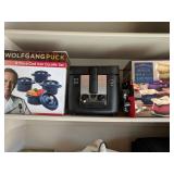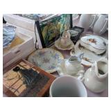 Furniture: Black Walnut Roll Top Desk, Henredon Armchair, Thomasville Dining Table, China Cabinet and Server, Sunset Swings 2 Person Lounge Swing, End Tables, Chaise, China Cabinet, Television Cabinet, Set of 3 Tempo Western Barstools, Pair of Baker Road Cherry Cabinets, Ethan Allen Armoire, Mahogany Bedroom Set: Bed, Nightstand, Dresser, Chest, Outdoor Bench Accessories: Glynda Turley Reverse Painted Lamp, Lamps, Waterford Lamp, Decorative Prints, Mirrors, Wall Art, Western Décor, Magazine Rack, Decorative Plates, Rugs, Swarovski Chandelier, Stiffel Lamps Artwork: “Ranch Roping” signed and numbered print by Chris Owen, “At the Branding” signed and numbered print by Chris Owen, “Victorian Christmas II” 1167/1650 by Thomas Kinkade, “Beyond Autumn Gate” 202/1750 by Thomas Kinkade, “Fisherman’s Wharf, San Francisco” 112/275 Artist’s Proof by Thomas Kinkade, “Autumn’s Gather” 189/395 by Martin Grelle, “Cowtown” by Jack Terry Jewelry: Gold, Sterling, Opal Ring, Larimar Stone, Sapphires, Ruby, Smokey Quartz, London Blue Topaz Kitchen: Oneida Flatware, Isaac Mizrahi Pots and Pans, Calphalon Pots and Pans, Calphalon French Roasting Gift Set, All-Clad 10” Stirfry, Calphalon Colander, Wolfgang Puck Cast Iron Cocette Set, Triple Slow Cooker and Server, Pyrex, Oreck Cordless Iron, Pur Water Pitchers, Utensils, Circulon Pans Wedgwood Sterling Leigh Bone China for 8 with Pasta Bowls, Waterford Millennium Crystal Collection- Toasting Flutes, Champagne Bucket, Accent Plates, Atlantis Crystal Estrella Glasses (Champagne Flutes, Water and Wine), Atlantis Ice Bucket, Waterford Master Cutter Bowl Billy Briggs, Hoya Crystal Glasses, Waterford Crystal Bear, Waterford King’s Bowl, Waterford Apprentice Bowl, “Equestrian Braid” Flatware by Ralph Lauren, Atlantis Decanters Lladros: All hand signed with boxes, “A Wish Come True” 7676, “Anticipation” 6608, “Wildflowers” 6647, “Fragrant Bouquet” 5862 Shoes: (Many New) Stetson Boots, Stuart Weitzman, Michael Kors, Dan Post Boots, Ariat, Charlie 1 Horse, Cole Haan, Steve Madden, Coach Cowboy Hats: Stetson, Resistol, Charlie 1 Horse Hartmann Cosmetic Case, Carryon Bag, and Suitcases, Luggage Clothing: Vericci Fur Coat, Alberto Makali Fur Coat, Vintage Himmel & Sons Fur, Burberry Coat, Cripple Creek Fringe Leather Jackets, Christine Alexander, Tisori, Lafayette 148, Xelement Motorcycle Leather Pants, Dana Buchman, Many with Tags. Walt Disney Classics Collection Event Sculptures, Disney Mugs, Disney Watches, Disney Serigraphs, Beanie Babies Fenton, Glassware, Decorative Plates, Dishes, Vases, Figurines, Michael Hero Picture Frames, Mikasa Electronics: Onkyo TX-NR818 Receiver, Definitive Speakers and Subwoofer and Surround Sound, Bose Stereo Garage: Craftsman 10” Miter Saw, Ladders, Smokey Joe Grill, Dyson Vacuum, Hoover SteamVac, Little Giant Ladder Systems 17’, Werner Ladder, Yard Tools, Gardening Items