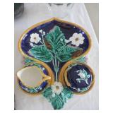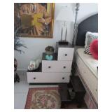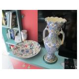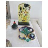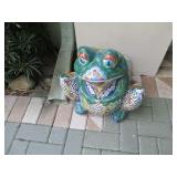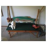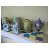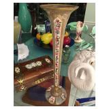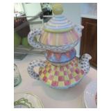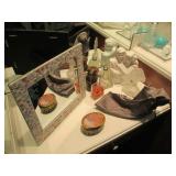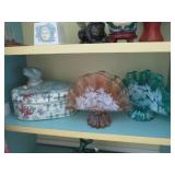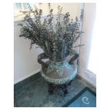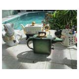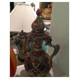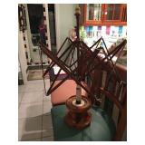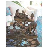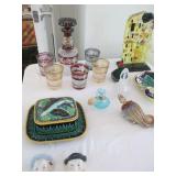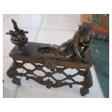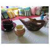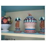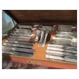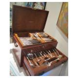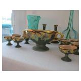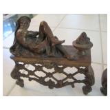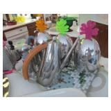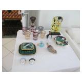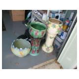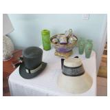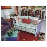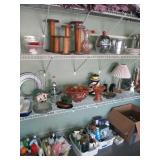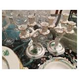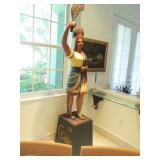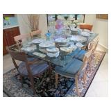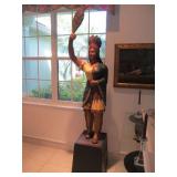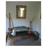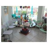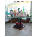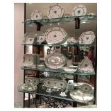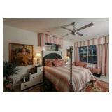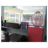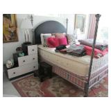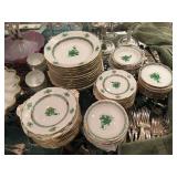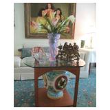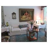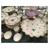 Many items from Living Walls Large set oF Herend China, Tiffany Shell pattern silver plate flatware in a custom fitted box, Baccarat stemware, other stemware, 2 full beds, queen bed, 3 leather sofas, antique majolica sardine box, condiment set, & 40" high Minton vase, modern dinette, formal dining set, Alessi kitchenware, bar chairs, , TVs, stemware, Blenko large vase, bookends, refrigerator, fire place screens, metal yard jockey, carved swan, Beautyrest full bed, set of Italian pottery, Venetian mirror, modern queen four poster bed, set of Block glasses, 3 gladioli vases, dress form, leather bench, leather electric chair, new cameo glass, glass plant stands, collectible modern art glass, outdoor wicker table & chairs, lounges, rocker; chairs with footstools, settee & coffee table, ottoman, lamps, English Victorian wash stand, antique clothing, Bakelight dresser set, cigar store Indian maiden, South Pacific cigar store Indian, oriental rug & many area rugs, epergne, 1929 hand painted punch set, Hull & Roseville pottery, cookie jar collection, patio umbrellas, silk plants, croquet set