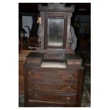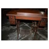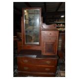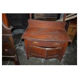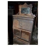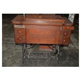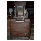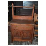 Primitive & Antique FurnitureOak zinc top kitchen cupboard w/frosted glass; Oak bookcase secretary w/double mirror; Knock down wardrobe; Ornate 3 drawer dresser w/mirror; Marble insert dresser w/mirror; Center pedestal oak dining table; 6 Tin Pie Safe; 2- Oak antique beds; Nice 5-leg square oak table; 2- Oak wash stands w/ towel bar; Oak library table; Oak buffet w/mirror; 48” Curved top immigrants chest; Fainting sofa; Parlor table w/ball & claw feet; Oak rocker; Oak picture frame; Oak coat racks; Press & T-Back oak dining chairs; 2 Treadle sewing machines; 6’ Rough kitchen cabinet; Nice trunks; Cedar chest; Art Glass – – Pottery – – QuiltsPrimitives – – Antiques – – Stoneware – – ClocksButcher kettle w/stand; Buck board wagon seat; Grey Hound coaster wagon; Fair Banks Morse Coffee Mill; Single row plow; Stop, Road Work Ahead road sign; Vintage Toys