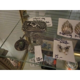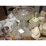 types of Depression glass, A beautiful Depression Punch bowl set, Old Sterling lighter case, Few pieces of Sterling Silver Jewelry, Gnome Hummel, Japanse plates, Japanse cup and saucers and