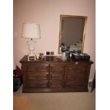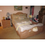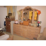 Light wood Queen bed - Ethan Allen dresser/w mirror and end table to