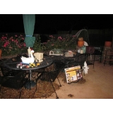 Black iron patio tables with 4 chairs each, Black iron Bench rocker, 2